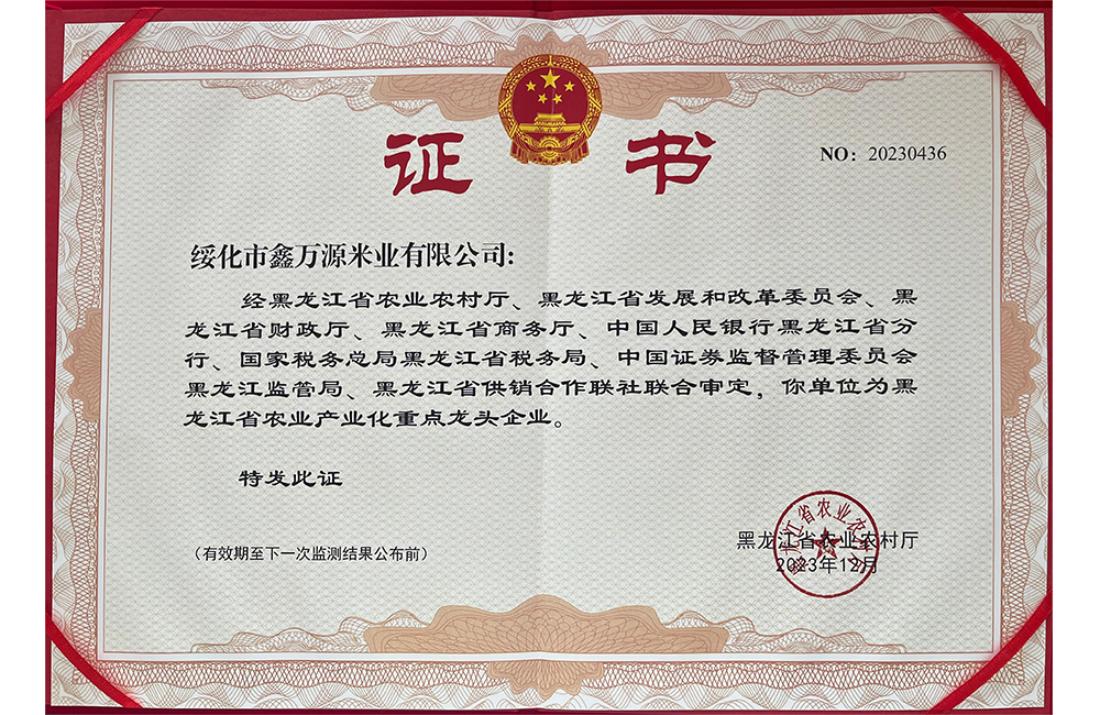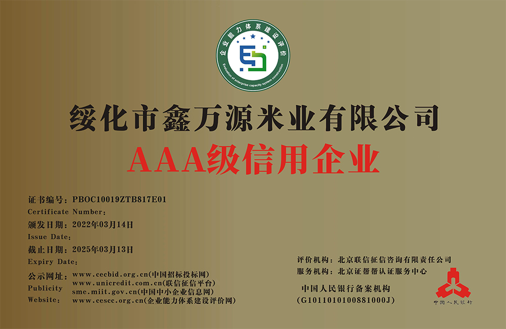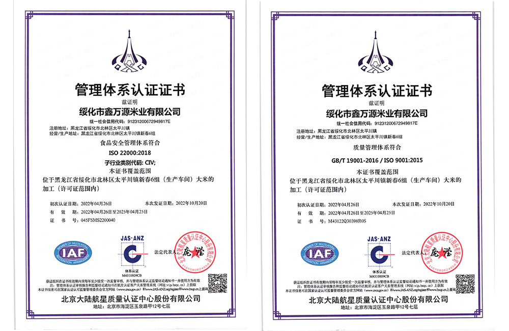 走進(jìn)我們 ABOUT US 您現(xiàn)在的位置:網(wǎng)站首頁 > 走進(jìn)我們 > 資質(zhì)榮譽(yù) 公司簡介 COMPANY PROFILE 領(lǐng)導(dǎo)致辭 CORPORATE CULTURE 資質(zhì)榮譽(yù) HONORS 企業(yè)文化 HONORS 黑龍江省級重點龍頭企業(yè) 黑龍江省級重點龍頭企業(yè) 專精特新中小企業(yè)證書 食品安全、質(zhì)量管理體系認(rèn)證證書 AAA級信用企業(yè):鑫萬源米業(yè) AAA級企業(yè)信用等級證書 共35條記錄 當(dāng)前為第6頁/共6頁上一頁1234...6下一頁